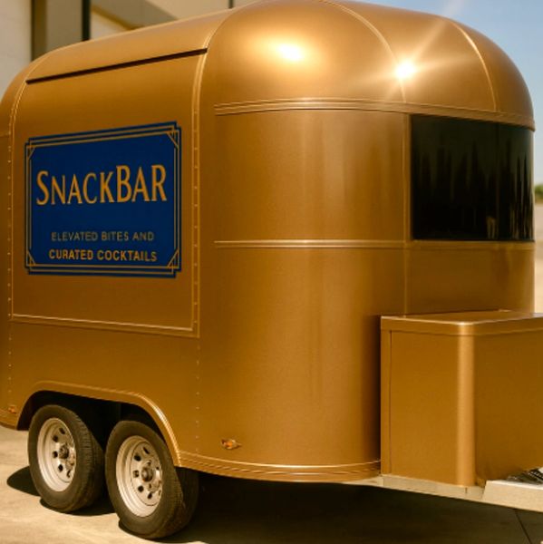 SnackBAR is a custom-built copper catering trailer inspired by a vintage Airstream. Designed for those who appreciate beauty in every detail, it brings the sophistication of a Parisian salon to any destination — from vineyards and private estates to film premieres and curated soirées.